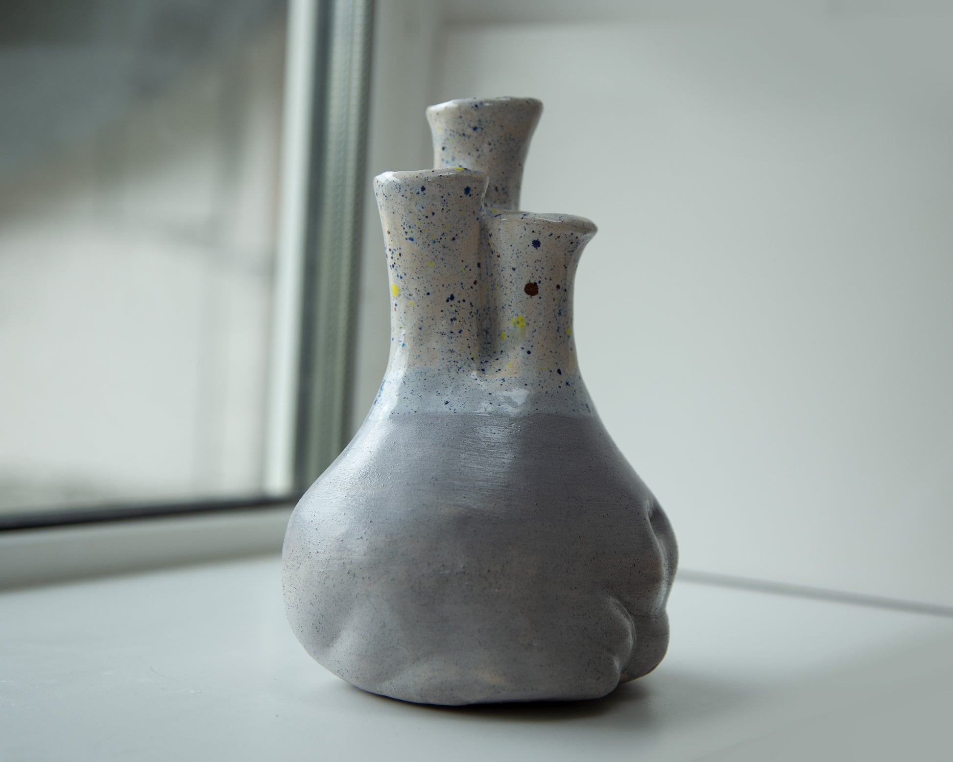 Nude woman torso with round booty sculpture made as vase for flowers. This is fully created and handmade item by our team. Sculpture / vase made from ceramic mass, were baked on 1100c, glazed with natural enamel, water resistant, real vase for flowers. We add handpainted ornament on this sculptural vase. Could be awesome gift or cute decoration for your home.