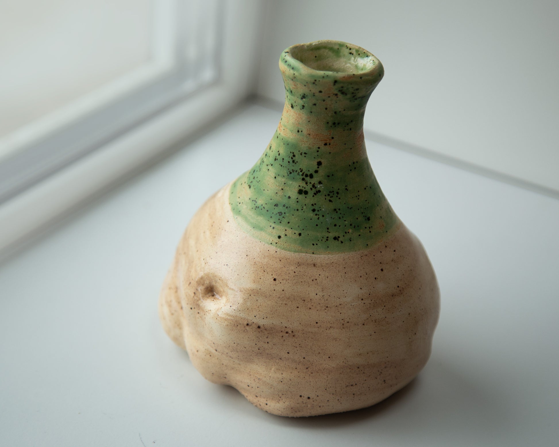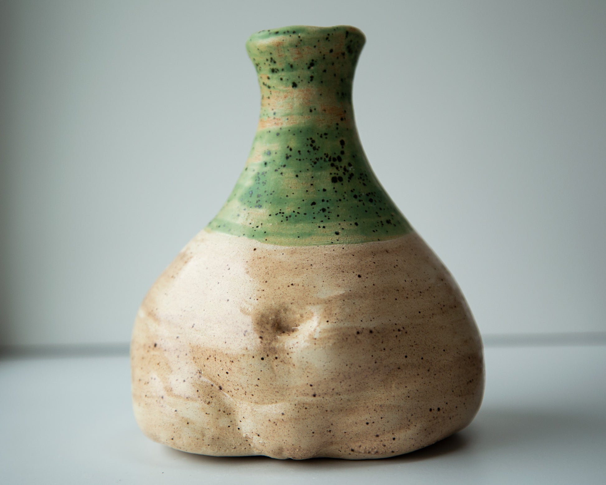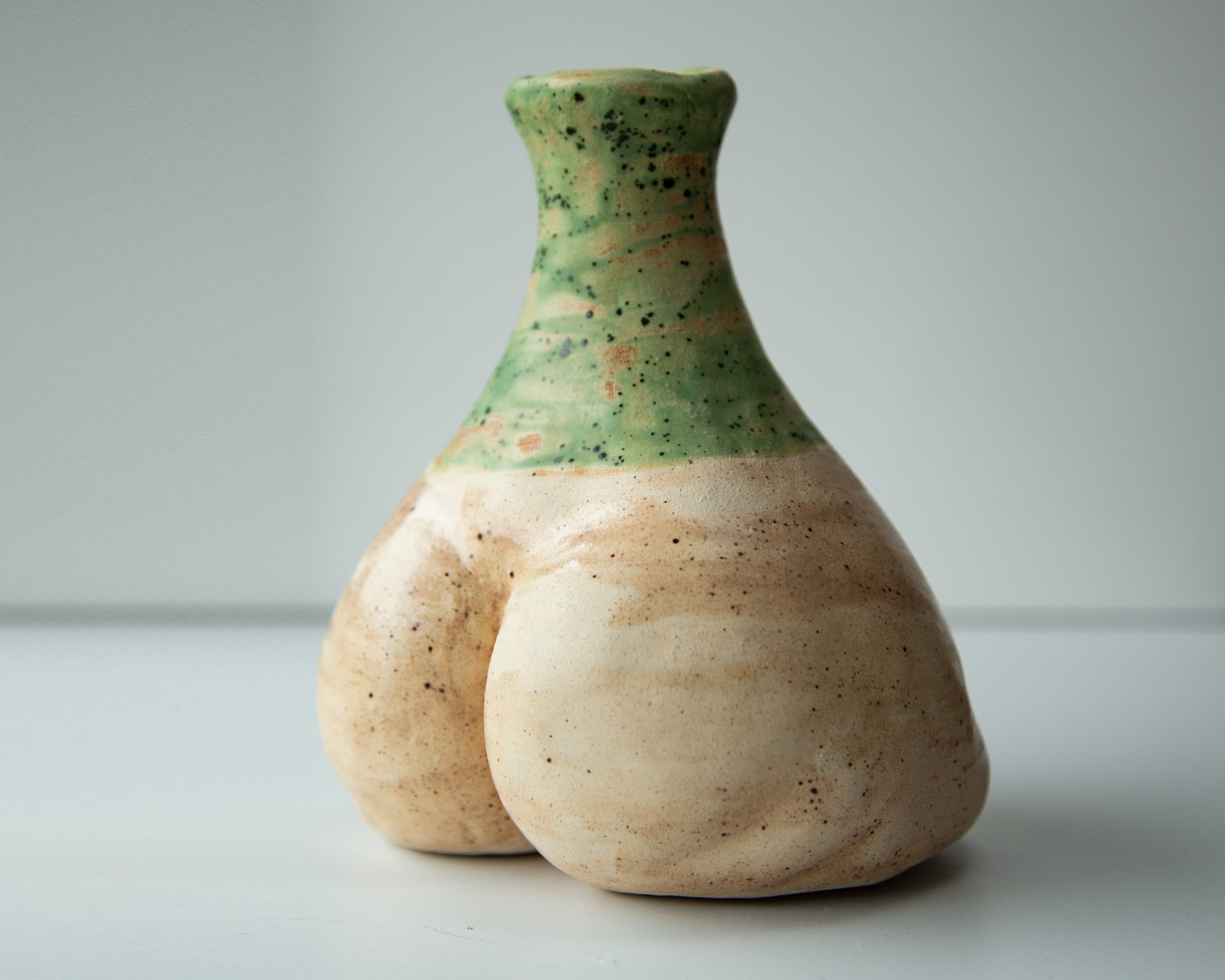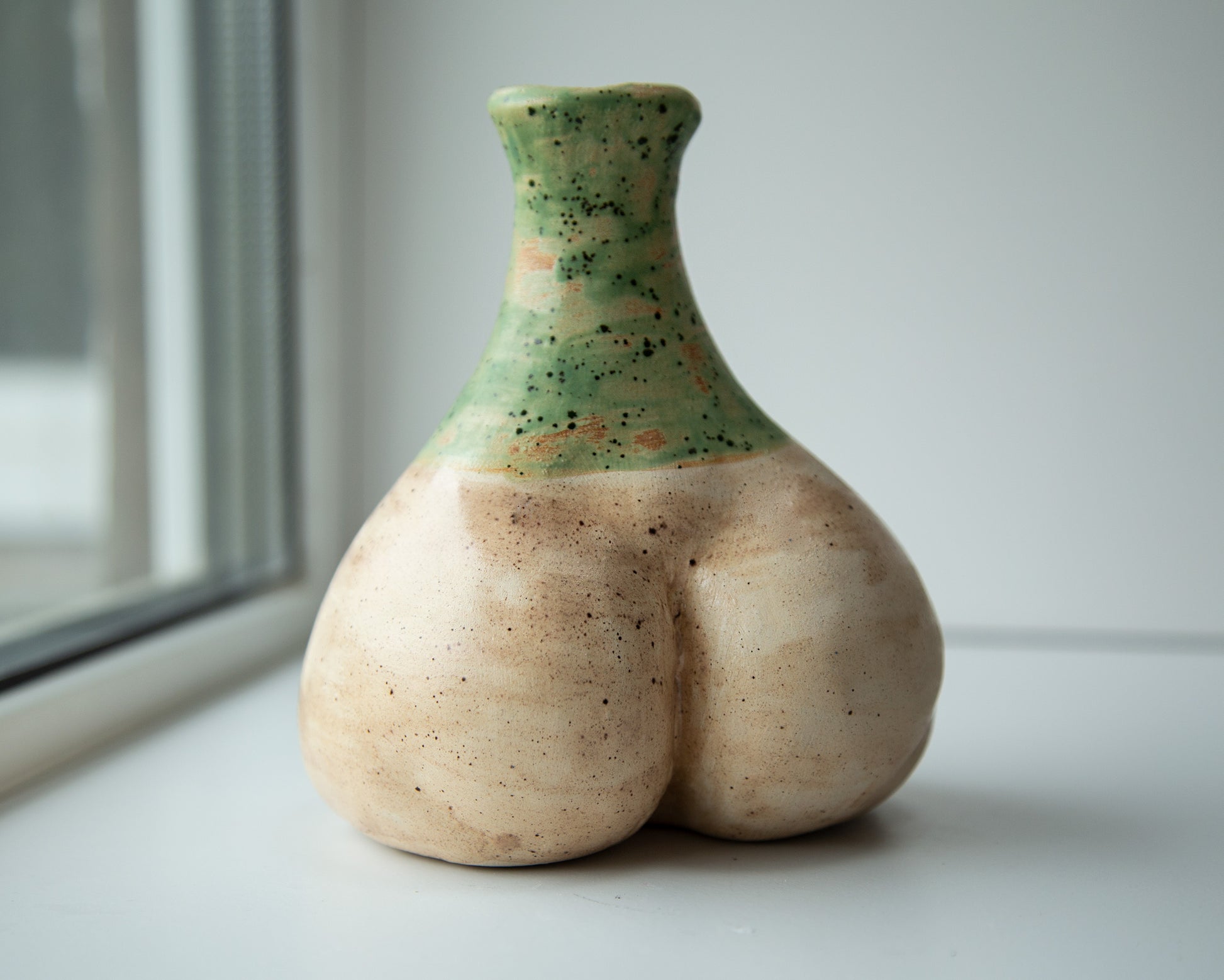Nude woman torso with round booty sculpture made as vase for flowers. This is fully created and handmade item by our team. Sculpture / vase made from ceramic mass, were baked on 1100c, glazed with natural enamel, water resistant, real vase for flowers. We add handpainted ornament on this sculptural vase. Could be awesome gift or cute decoration for your home.